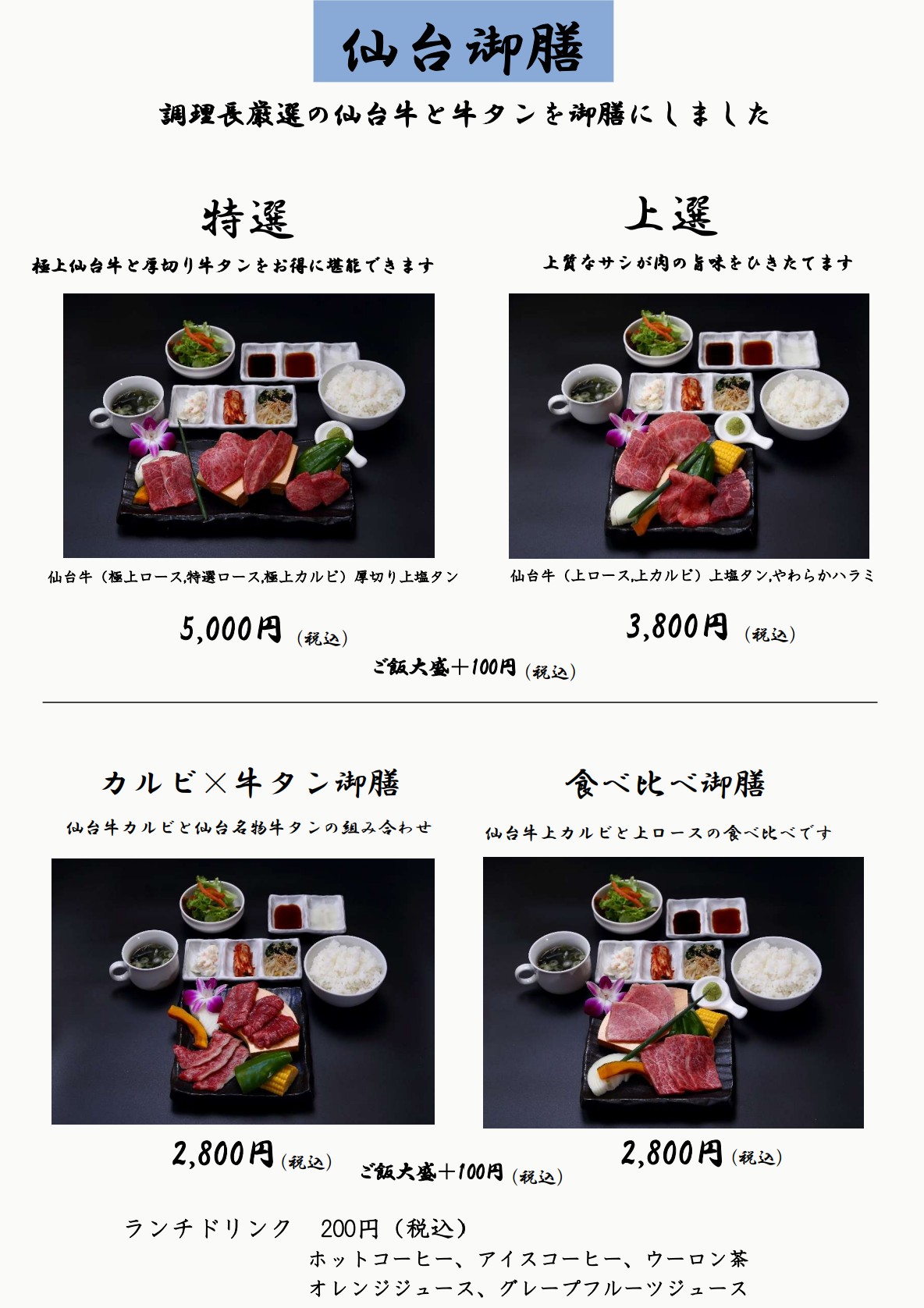 ・仙台黒毛和牛特上カルビ 焼き野菜添え - ・仙台牛特上ロース